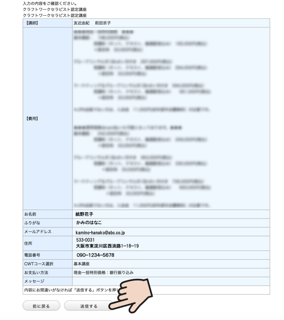 間違いがなければ、下の「送信」ボタンをクリックしてください