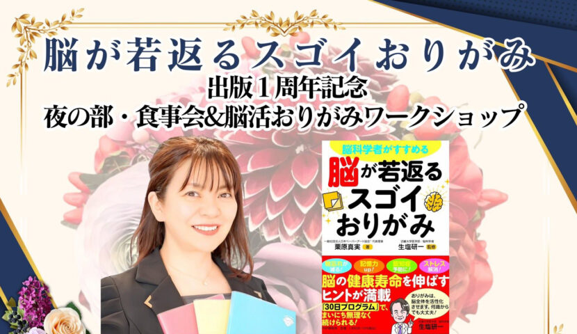 「脳が若返るスゴイおりがみ」出版1周年記念 昼の部に続き、夜の部の開催が決定されました(昼の部の詳細はコチラへ)!